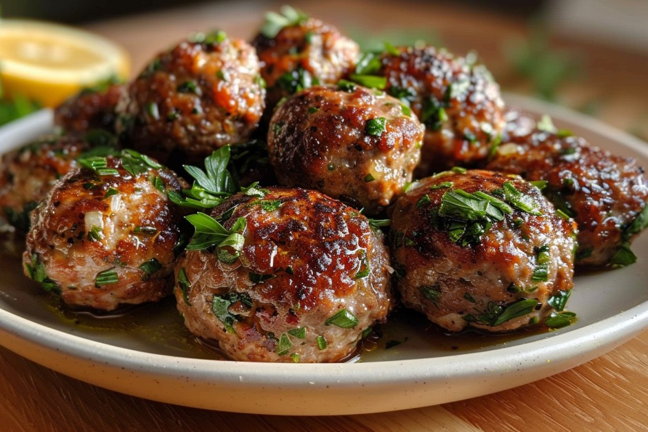 Classic Italian meatballs made with ground beef, breadcrumbs, and herbs.