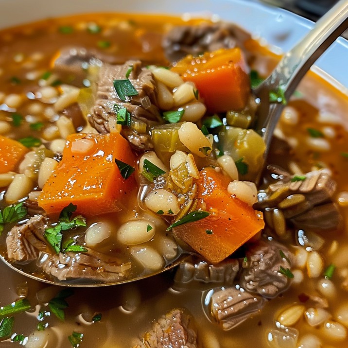 Loaded with nutritious veggies, tender beef and plump barley, it’s a complete meal in a bowl!